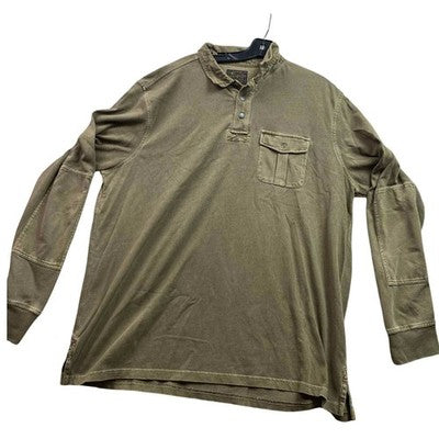 Elevate your casual wardrobe with this Lucky Brand long-sleeve polo shirt, where rugged charm meets refined style. The unique olive green hue, achieved through a special washed and worn treatment, gives it an authentic, lived-in feel. Featuring a classic polo collar with a three-button placket and a single button-flap chest pocket, this shirt offers both style and functionality. The long sleeves with reinforced elbow patches enhance its durability and adds a touch of utilitarian flair. Whether you're heading out for a weekend adventure, enjoying a laid-back brunch with friends, or simply unwinding at home, this polo shirt is a versatile choice that effortlessly combines comfort and character.