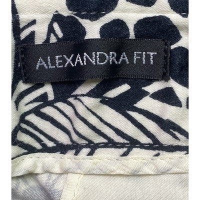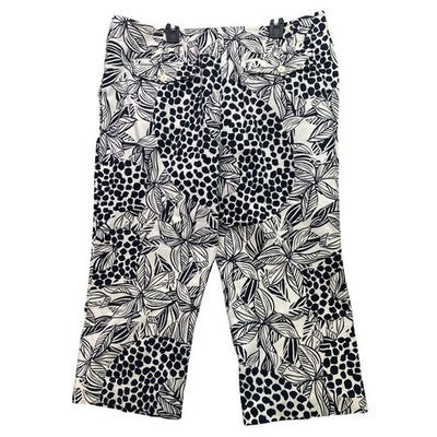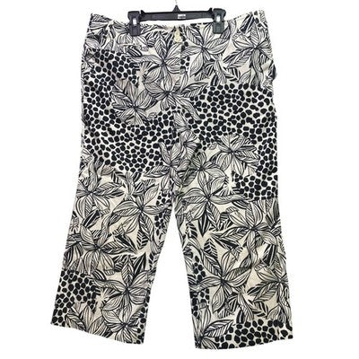 Keywords: Madison Studio, Alexandra Fit, capri pants, cropped pants, leaf print, black and white, women's trousers, stylish, versatile, summertime, resort wear, day to night