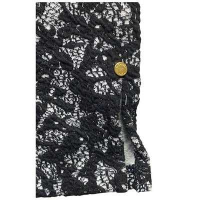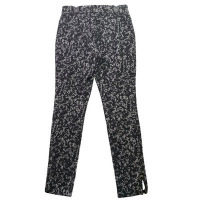 Discover effortless sophistication with these MICHAEL KORS pants, showcasing a captivating black and white floral jacquard pattern that adds a touch of artistic flair to your wardrobe. The textured fabric creates visual interest and a luxurious feel, while the slim leg silhouette ensures a flattering and modern fit. Subtle gold-tone hardware accents, including decorative buttons at the hem, add a refined touch of glamour. Perfect for elevating your everyday style or adding a chic element to your workwear ensemble, these pants transition seamlessly from a business casual office to a sophisticated evening out.