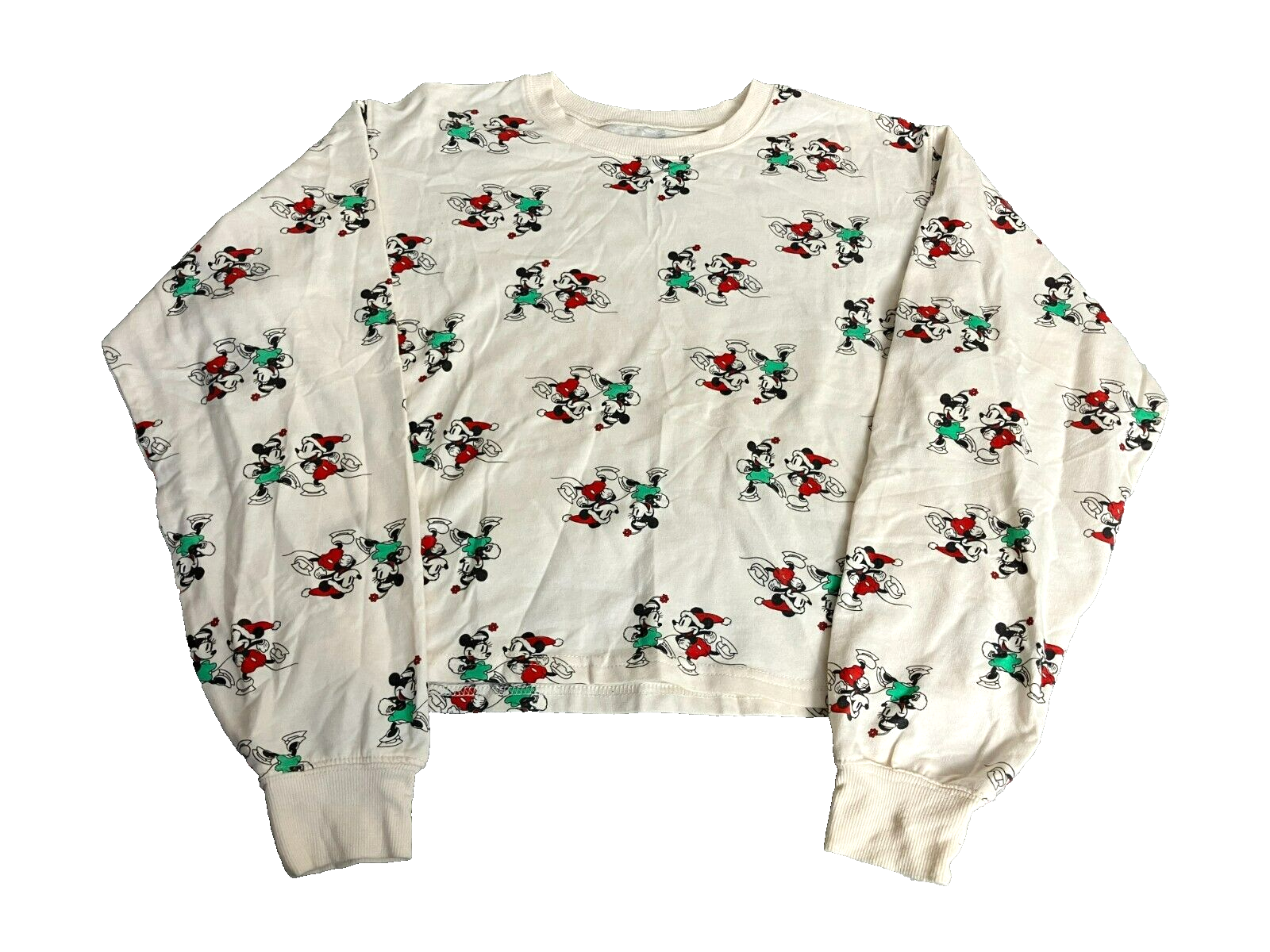 Mickey & Minnie Mouse Sweater Womens Extra Large White AOP Skating Disney Ladies