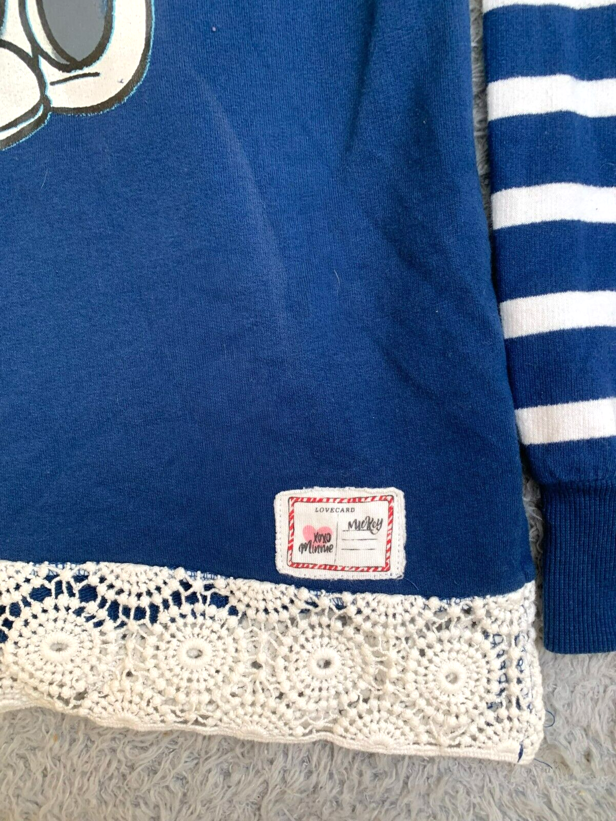 Mickey & Minnie Mouse Sweatshirt Womens Medium Crochet Lace Trim Hoodie Disney