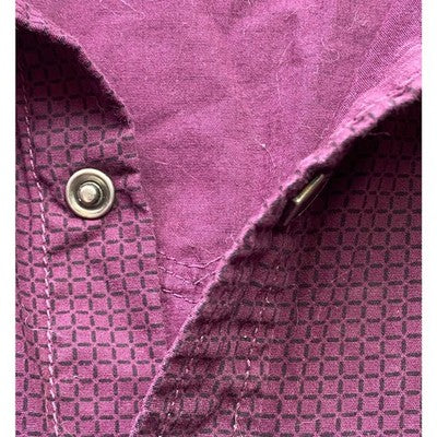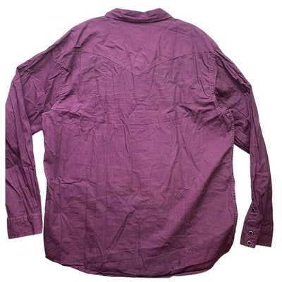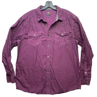 Embrace rugged Western flair with this striking Moon Shine Spirits men's long-sleeve snap-front shirt. The deep purple hue is beautifully contrasted by a subtle yet intricate geometric pattern that adds depth and visual interest. Designed with classic Western detailing like dual chest pockets featuring pearl snaps and pointed yokes on the front and back, this shirt exudes authentic cowboy charm. The cuffs also boast snap closures, adding a practical and stylish finishing touch. Perfect for a night out at the rodeo, a casual day on the ranch, or adding a touch of Americana to your everyday wardrobe.