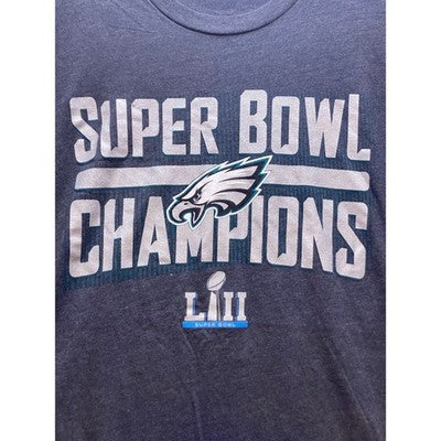 Score a touchdown with this awesome Philadelphia Eagles Super Bowl LII Champions t-shirt! This tee proudly displays the Eagles logo and "Super Bowl Champions" text, letting everyone know you're a true fan. The heathered gray color gives it a cool, vintage vibe. Perfect for game days, casual outings, or showing off your team pride around town. Rock this shirt at your next tailgate party, while watching the game with friends, or even just running errands to let everyone know who you're rooting for!
