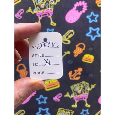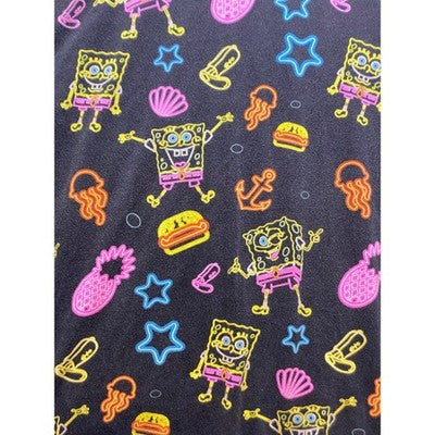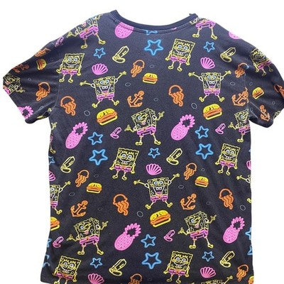 Dive into Bikini Bottom with this eye-catching Nickelodeon Spongebob T-shirt! A vibrant, all-over neon print featuring Spongebob, Krabby Patties, pineapples, and other iconic imagery pops against the black background, creating a playful and nostalgic vibe. The comfortable fit and soft fabric make it perfect for everyday wear, while the bold design ensures you'll stand out from the crowd. This tee is a must-have for any Spongebob fan looking to add a touch of fun to their wardrobe. Ideal for casual outings, themed parties, or simply lounging around at home, this Spongebob tee is sure to bring a smile to your face.