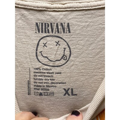 Nirvana Shirt Mens Extra Large Nevermind Beige Grunge Rock n Roll Kurt Cobain