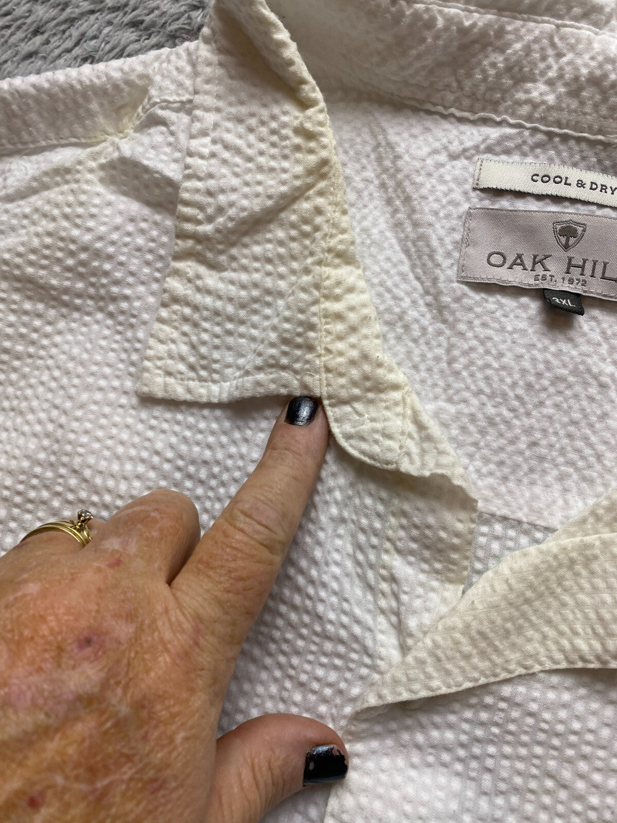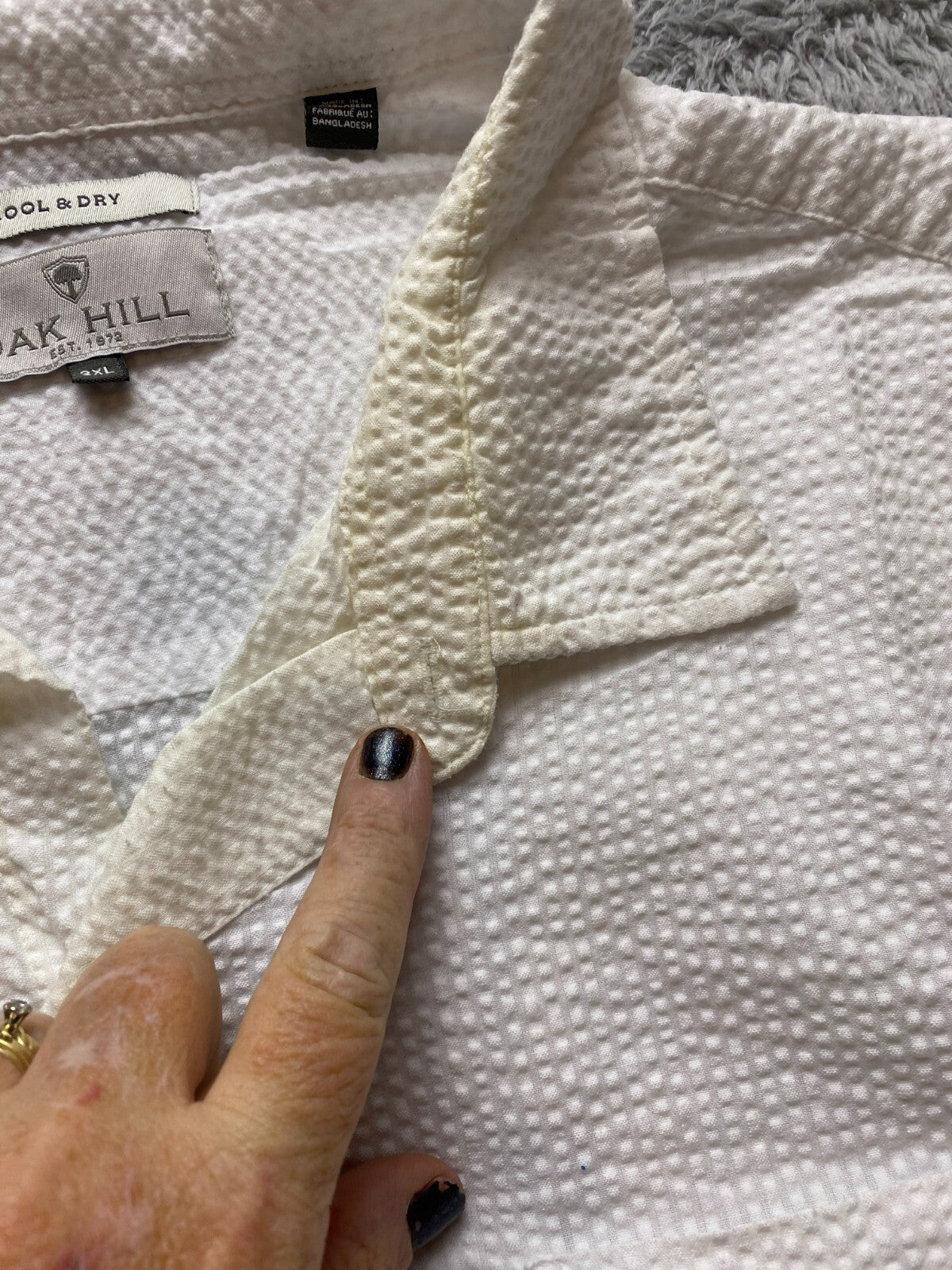 Oak Shirt Adult 3XL XXXL White Cool & Dry Seersucker Button Up Casual Mens