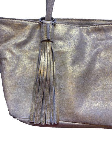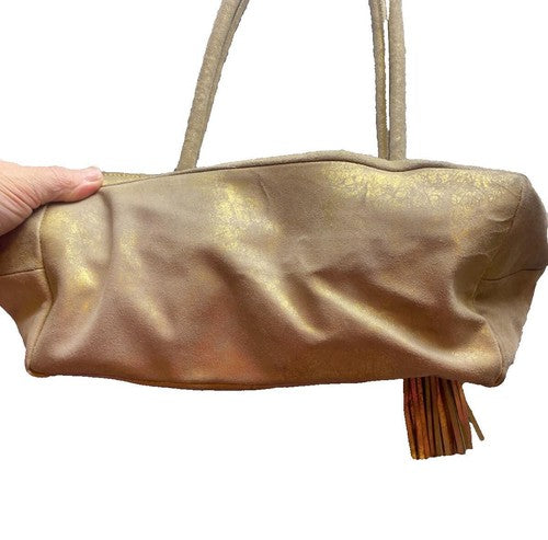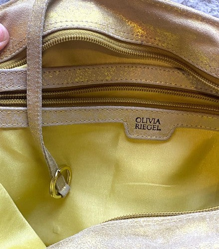Olivia Riegel Purse Gold Shimmer Tassel Key Fob Luxury Wedding Formal Shoulder
