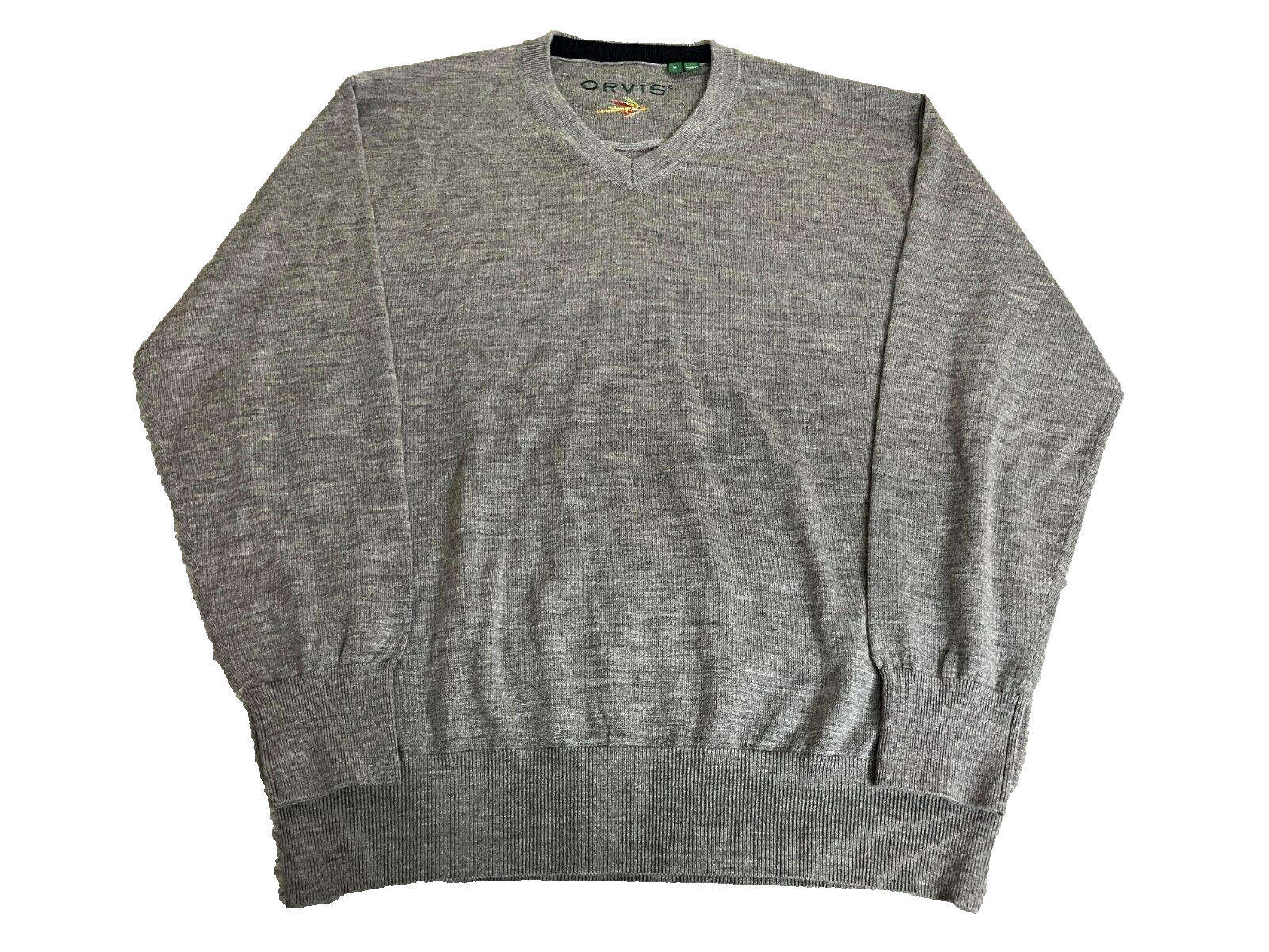 Orvis Sweater Adult Large Gray V-Neck Merino Wool Outerwear Pullover Cozy Mens