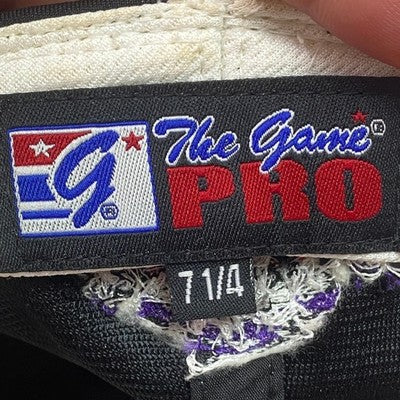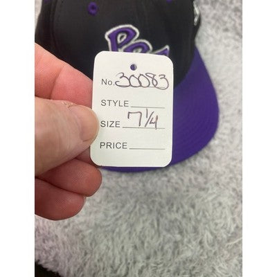 Keywords: baseball cap, PBC, game worn, fitted hat, embroidered, logo hat, men's hat, sports cap, gray hat, purple hat, baseball, athletic, cap, hat