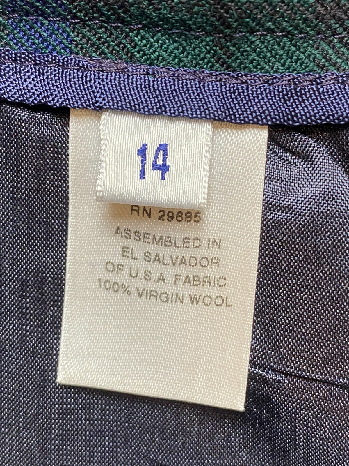 Pendleton Pants Womens 14 (33x27.5) Blue Green Plaid Virgin Wool Straight Leg