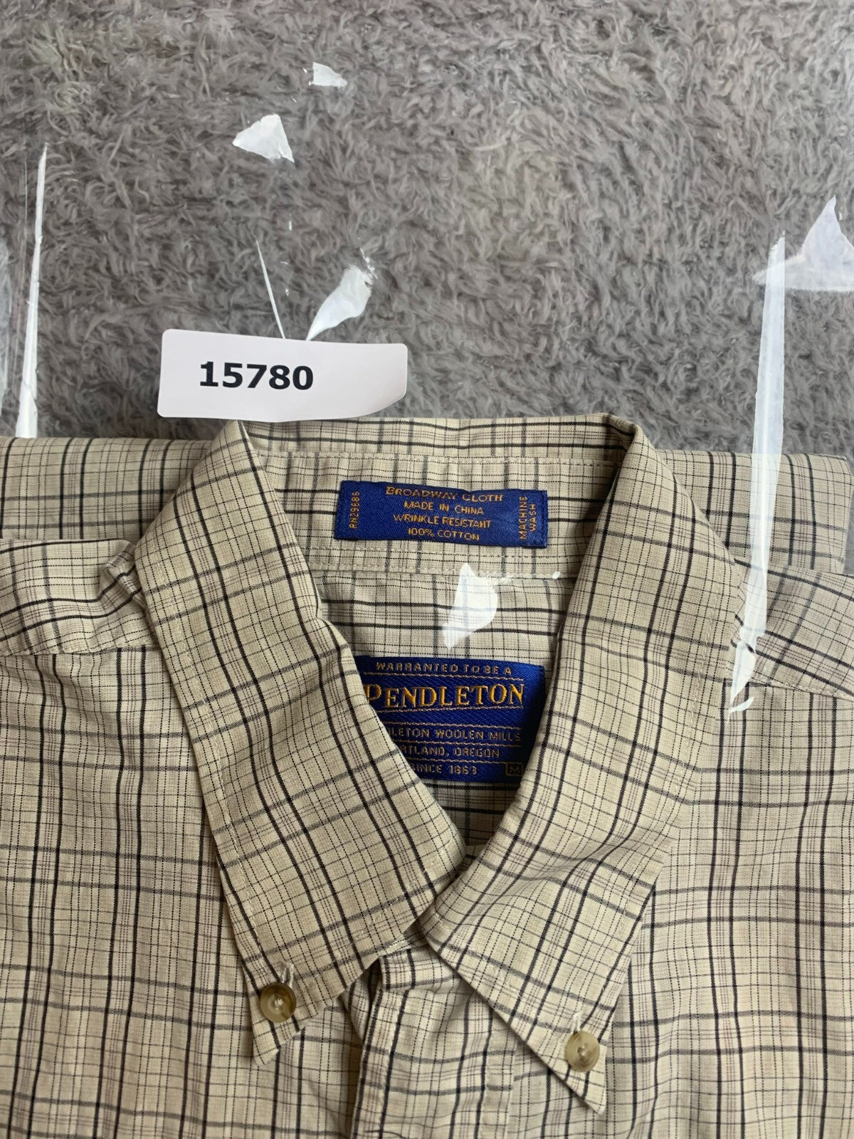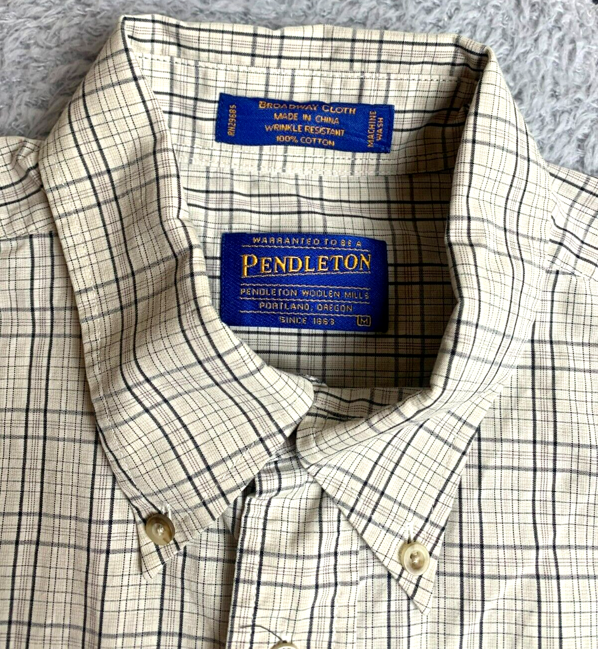Pendleton Shirt Adult Medium Beige Broadway Cloth Wrinkle Resistant Woolen Mens
