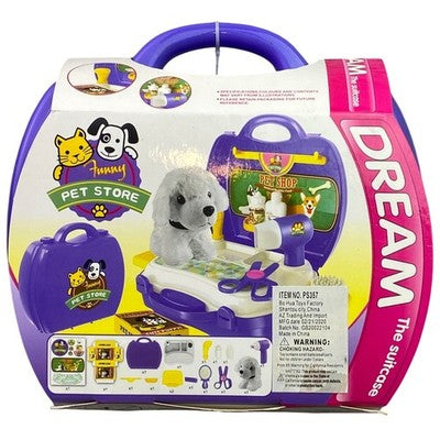 Spark imaginative adventures with this delightful Funny Pet Store Play Set. This charming suitcase unfolds to reveal a whimsical pet grooming station, complete with a fluffy toy dog, a miniature hairdryer, scissors, brush, and feeding bottles. Watch as little ones immerse themselves in hours of pretend play, caring for their adorable animal companions, developing nurturing skills, and fostering creativity. Perfect for travel, indoor fun, or as a delightful gift for birthdays and holidays.