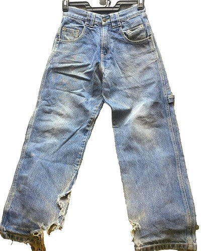 PINTAX Jeans Womens XXXS 3XS (28x27) Blue Denim Ripped Hip Hop Baggy Carpenter