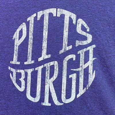 Show your city pride with this eye-catching tee. This short sleeve t-shirt features a unique round Pittsburgh graphic design. Crafted for comfort and style, this tee effortlessly combines casual flair with a touch of urban cool. The rich purple hue adds a pop of color to your wardrobe, making it a standout piece for any occasion. Perfect for game days, casual outings, or simply lounging around, this shirt is a must-have for any Pittsburgh enthusiast.