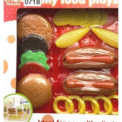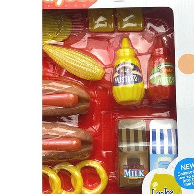 Keywords: pretend food, kids kitchen, play food, burger set, hot dog toy, corn on the cob toy, pretend meal, toy kitchen accessories, early learning toys, imaginative play, role playing, children's toys, food playset, mealtime fun
