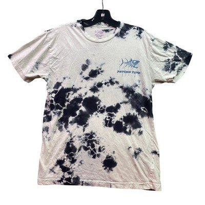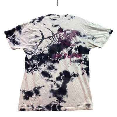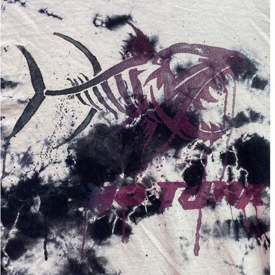 Boldly defy convention with this striking Psycho Tuna tee, where edgy design meets effortless cool. A mesmerizing tie-dye pattern in contrasting black and white creates a backdrop for the standout graphic: a skeletal tuna, rendered with artistic flair and dripping with purple ink accents, adding a punk rock touch to this wardrobe staple. The shirt's comfortable fit and breathable fabric make it perfect for casual everyday wear, while its unique design ensures you'll stand out from the crowd. Picture yourself sporting this eye-catching tee at a music festival, a laid-back skate session, or a casual coffee date, showcasing your individual style with every wear.