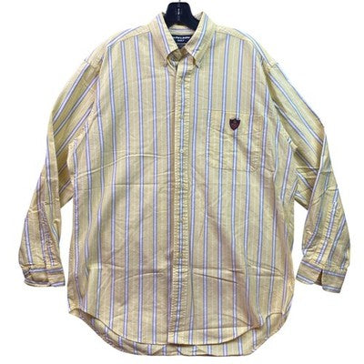 Ralph Lauren Golf Shirt Mens Medium Button Down Yellow Stripe Tilden Preppy