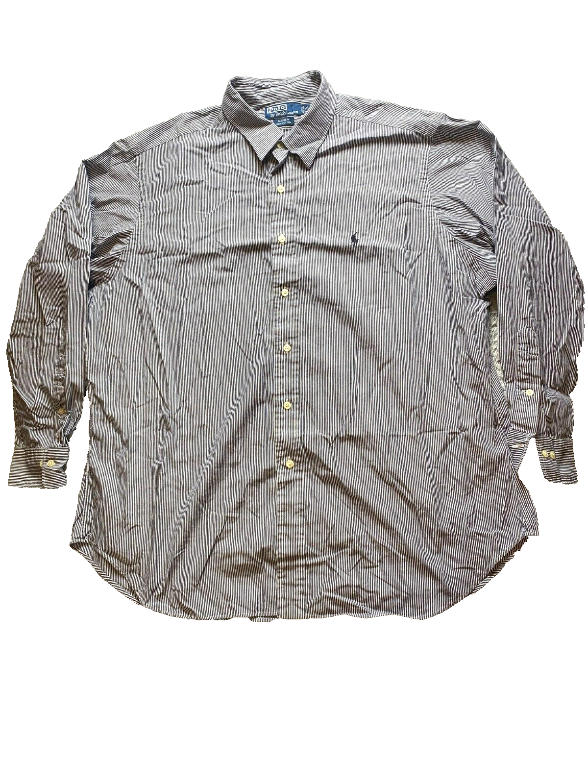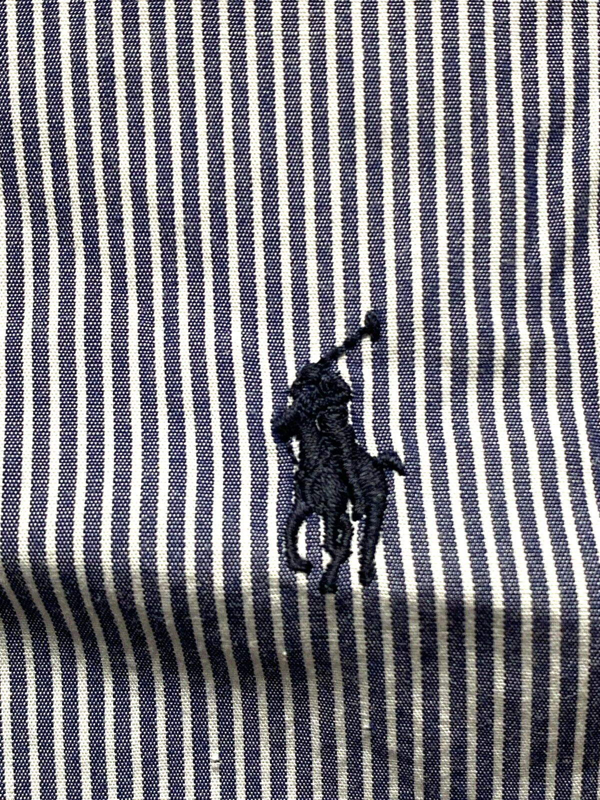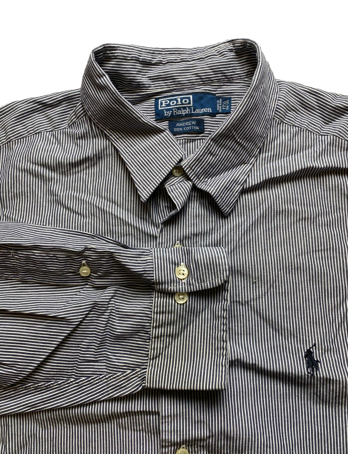 Ralph Lauren Shirt Adult 17.5 34/35 Navy White Stripe Button Up Casual Dress Men