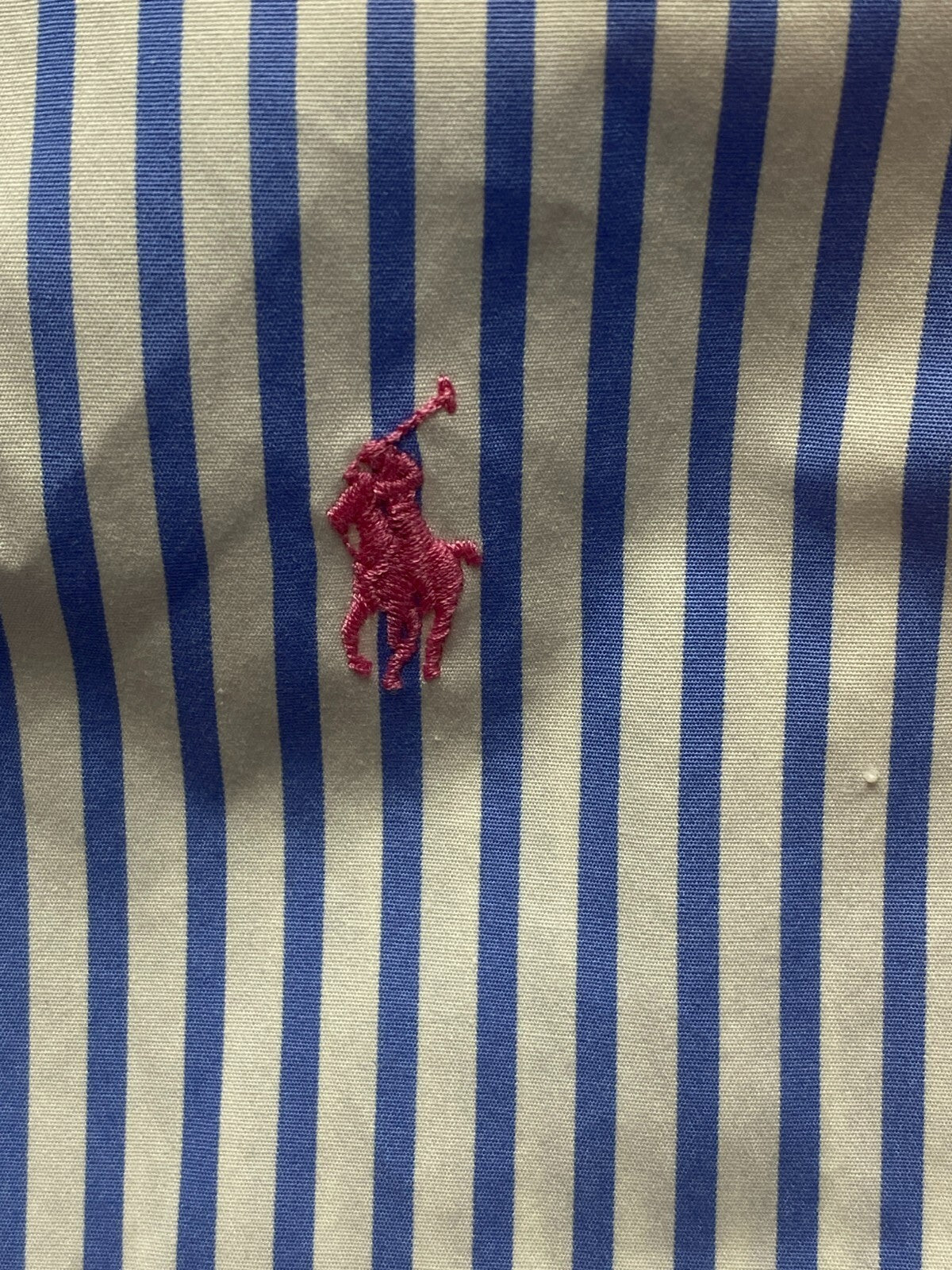 Ralph Lauren Shirt Adult Extra Large Blue White Striped Custom Fit Red Pony Mens