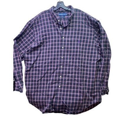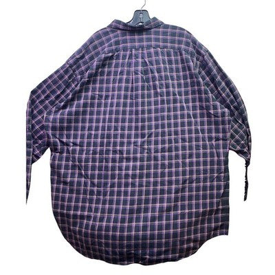 Keywords: Plaid Shirt, Button Up, Long Sleeve, Embroidered Pony, Casual Wear, Weekend Style, Office Attire, Comfortable Fit, Classic Design, Two Ply Cotton, Tall Size, Purple Accents, Everyday Essential