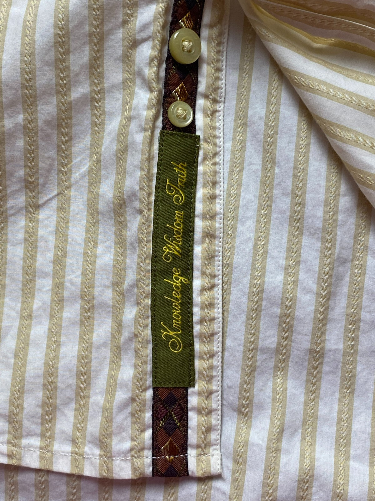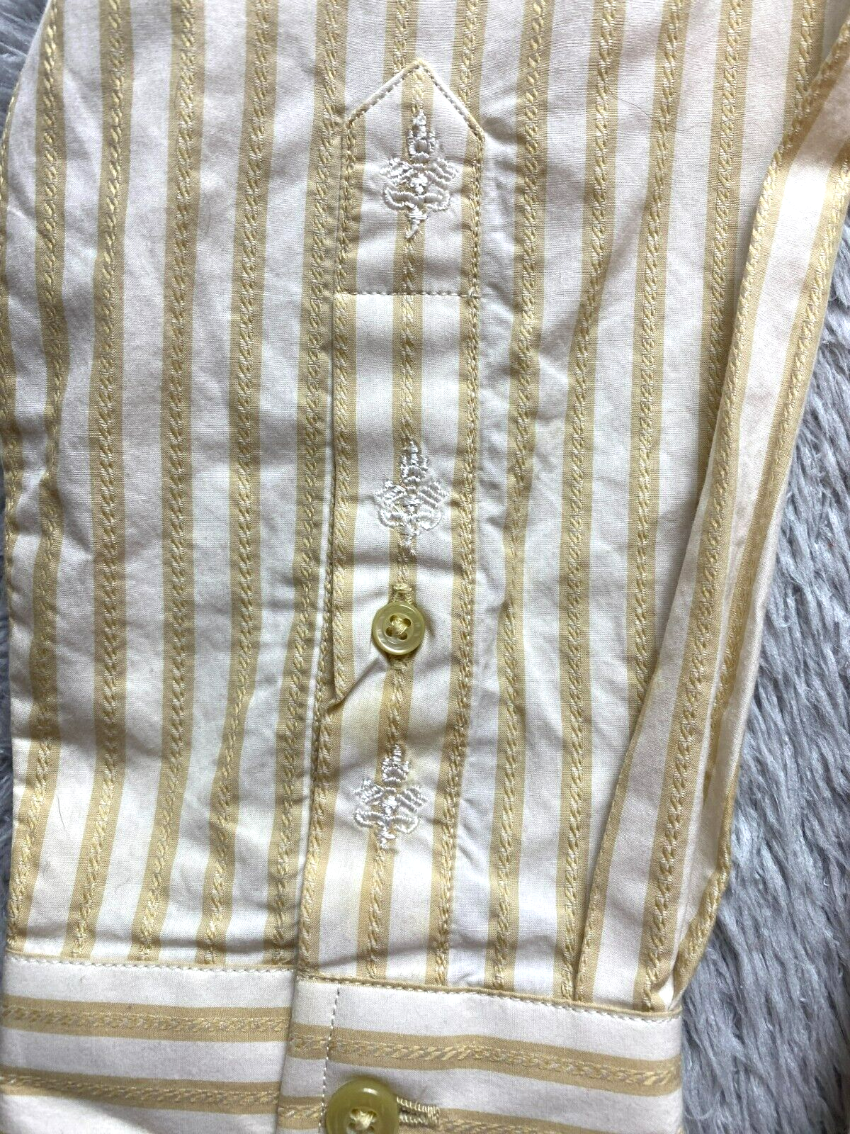Robert Graham Shirt Adult Medium Golden Tan Stripes Embroidered Rayon Silk Mens