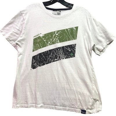 Unleash effortless style with this cool Roca graphic t-shirt! It features a distressed print with contrasting stripes in olive and black, exuding a modern, edgy vibe. A small Roca tag is sewn on the lower left hem. The super-soft cotton fabric ensures all-day comfort. This tee is perfect for casual hangouts, weekend adventures, or simply relaxing at home in style.