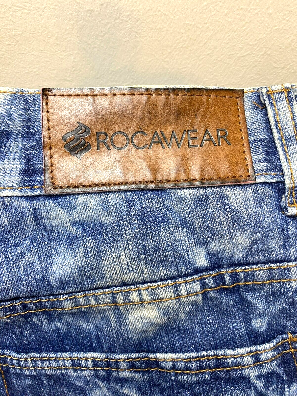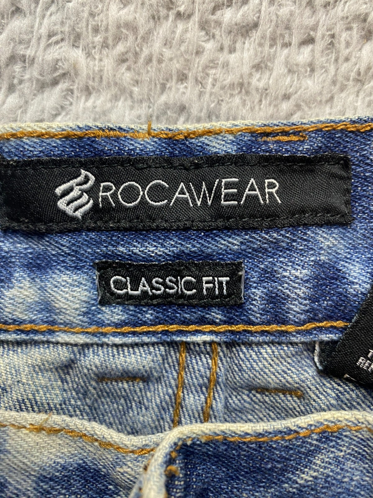Rocawear Jeans Adult 48x34 Blue Denim Classic Fit Wide Leg Skater Whiskered Mens