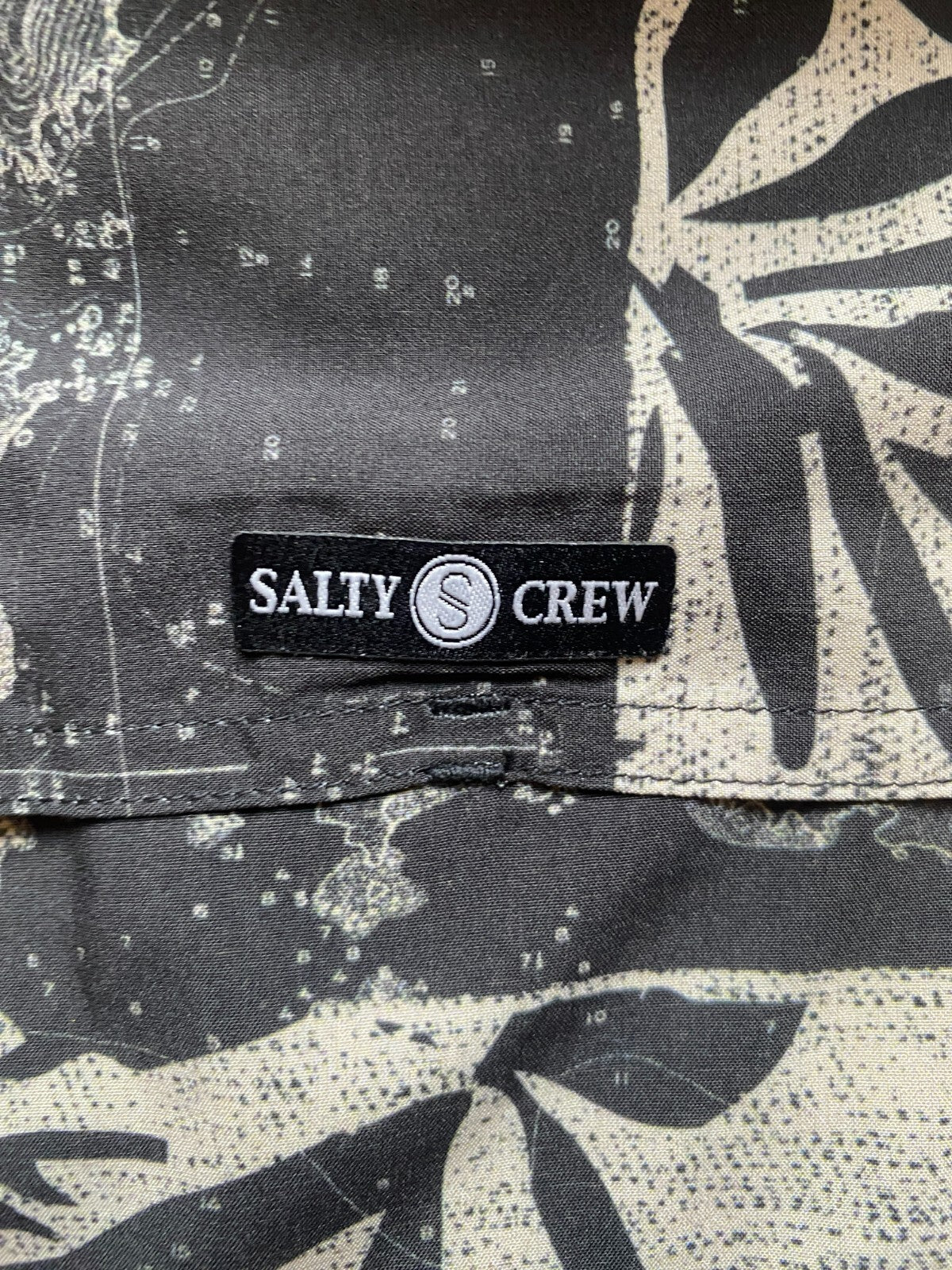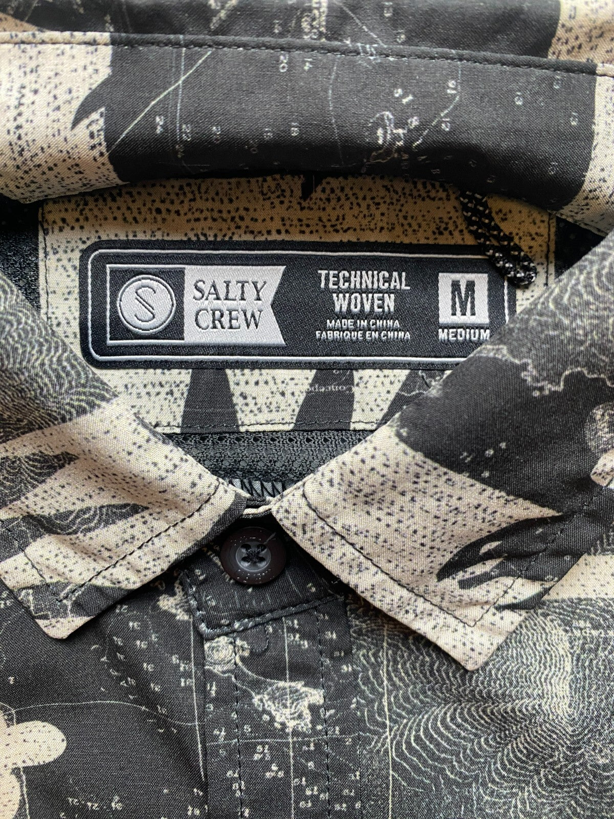 Salty Crew Shirt Adult Medium Black Sand Technical Woven AOP Flower Casual Mens