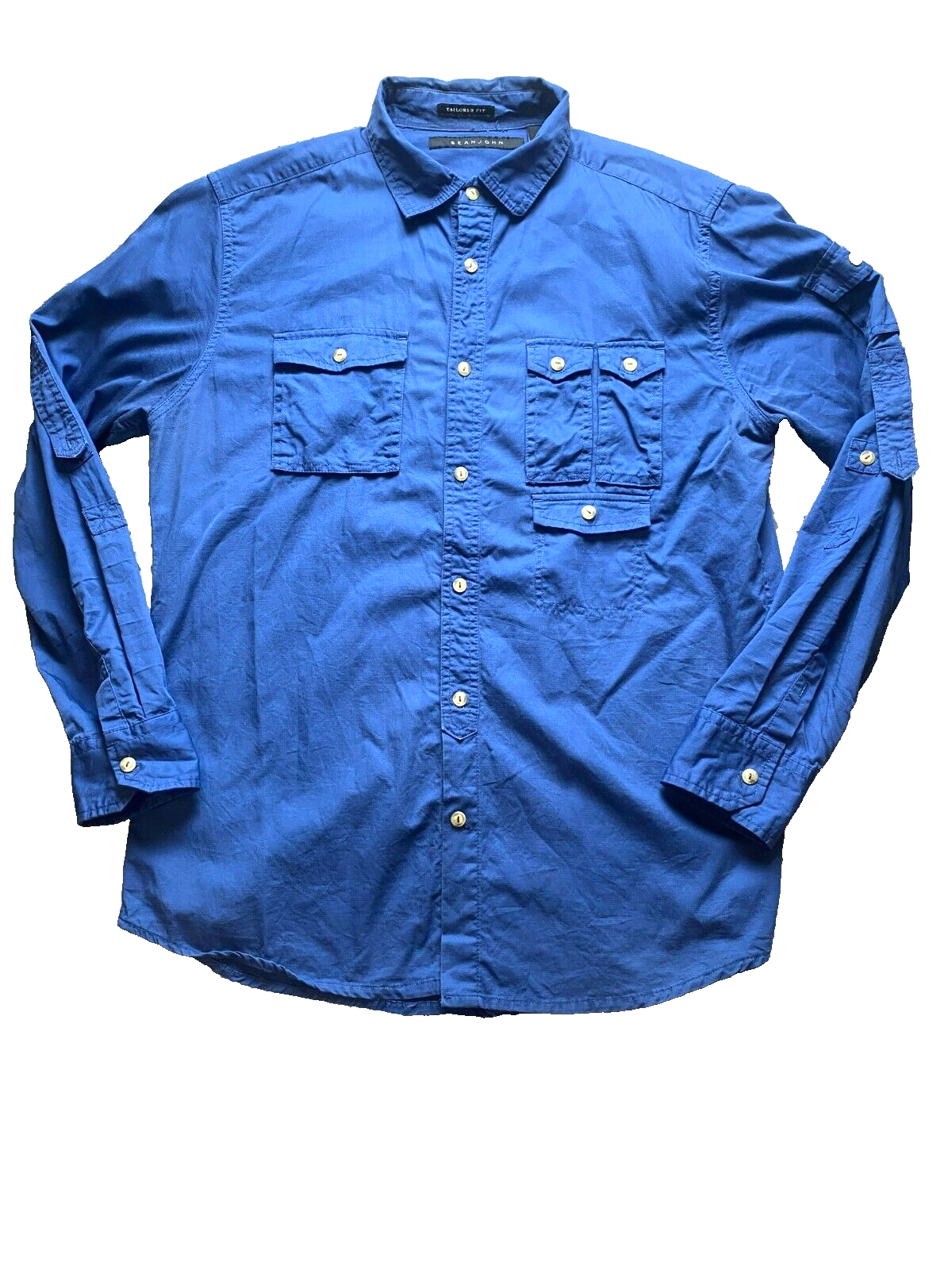 Sean John Shirt Adult Extra Large Blue Utility Flap Pockets Tailored Cargo Mens