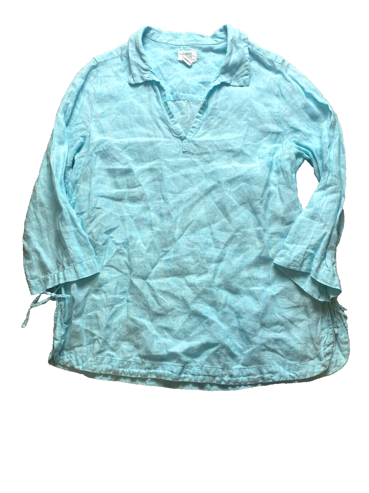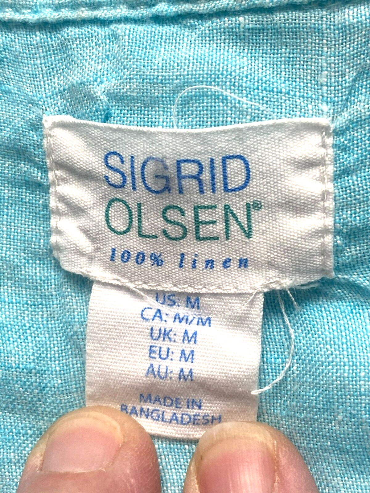 Sigrid Olsen Shirt Womens Medium Blue 100% Linen Oversized Loose Casual Ladies