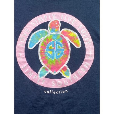 Keywords: Simply Southern, T-shirt, Turtle, Tie Dye, Navy Blue, Womens, Casual, Short Sleeve, Graphic Tee, Summer, Beach, Comfortable, Relaxed Fit, Large, L