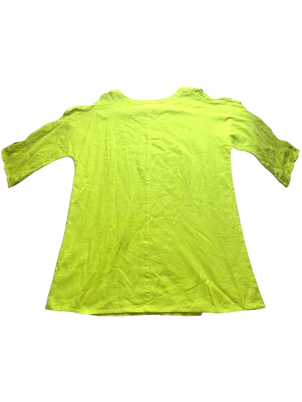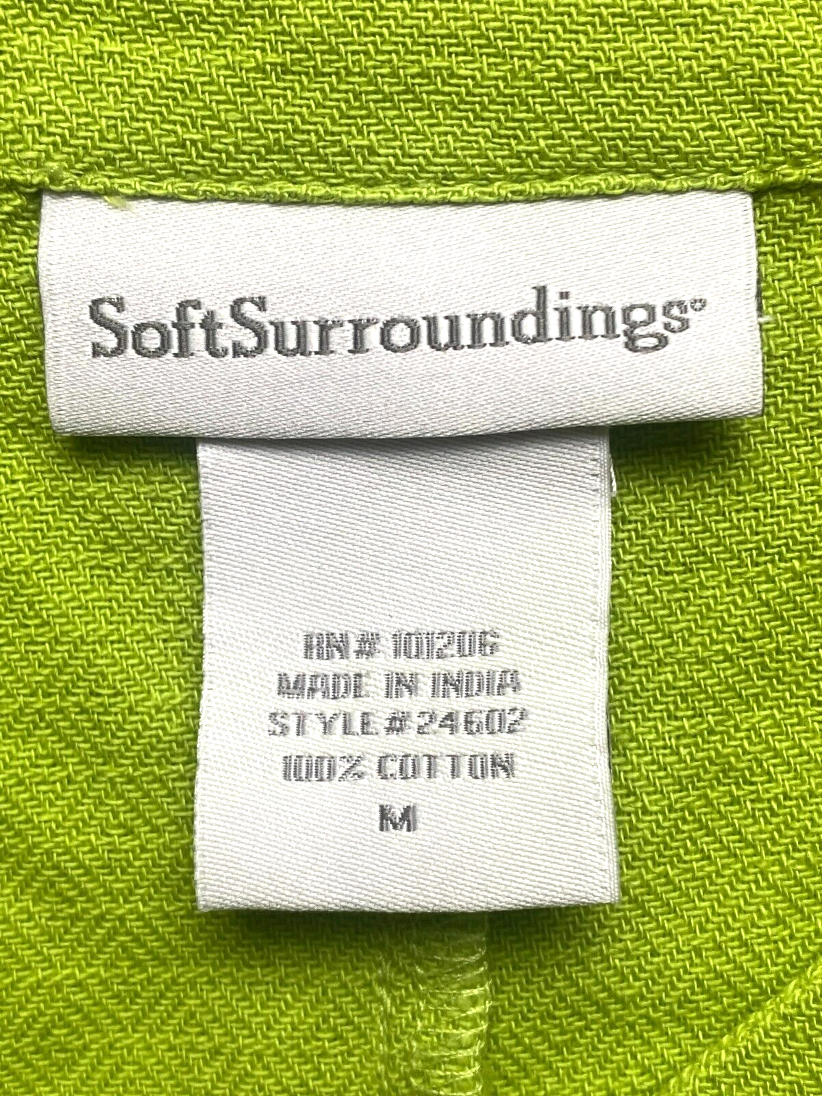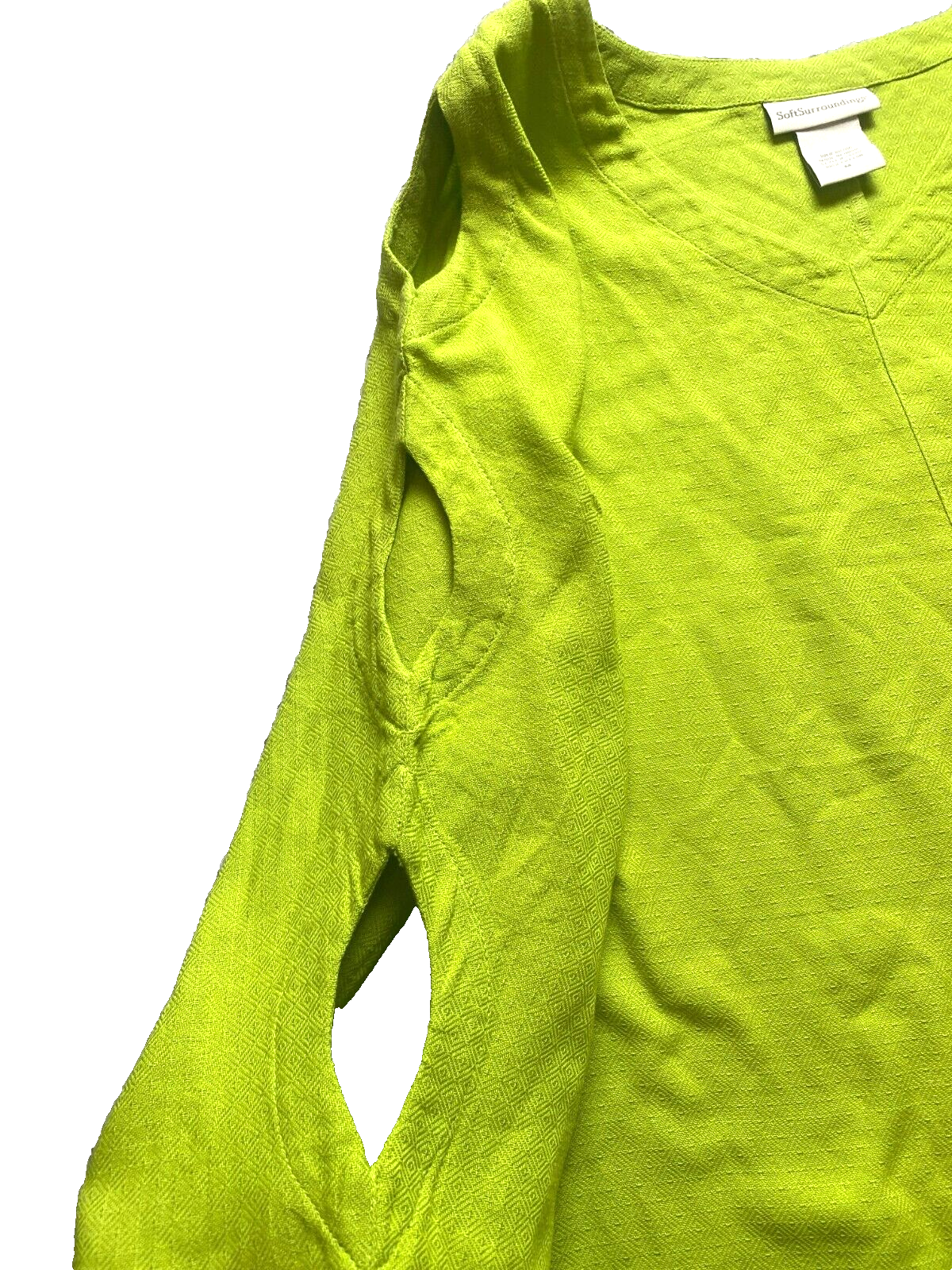 Soft Surroundings Shirt Womens Medium Green Boxy Gauzy Blouse Cut Out Ladies