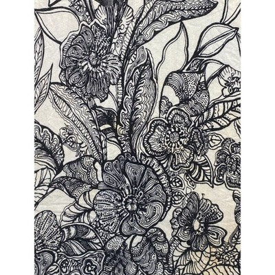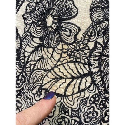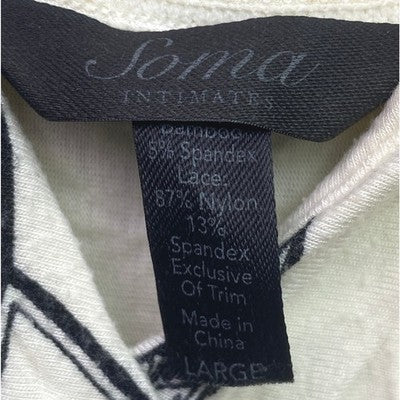 Adorn yourself in this captivating Soma Intimates nightgown dress, a dreamy blend of comfort and chic design. Delicate black floral patterns bloom across a creamy canvas, accented by a striking black lace overlay across the empire waist, creating a flattering silhouette that whispers elegance. Adjustable braided straps ensure a perfect fit, adding a touch of bohemian charm. Imagine yourself lounging in serene comfort or enjoying a relaxed morning, this piece is perfect for unwinding in style at home or as a stylish sleep dress.