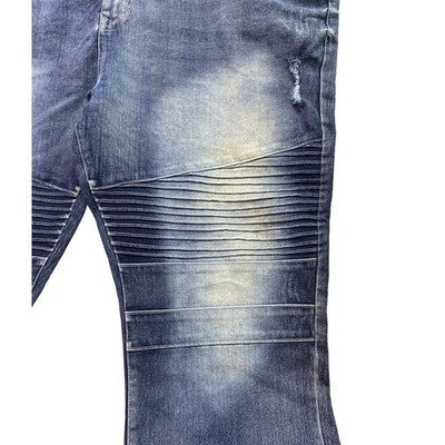 Rugged denim makes a statement with these eye-catching biker jeans. Washed detailing lends an authentic, lived-in look. Designed for the modern man, these jeans offer a comfortable fit and a touch of edgy style. The ribbed detailing on the thighs adds a unique texture and visual interest, while the distressed elements contribute to their cool factor. Elevate your casual wardrobe with these versatile jeans, perfect for a night out with friends, weekend adventures, or casual outings. Step up your denim game today!