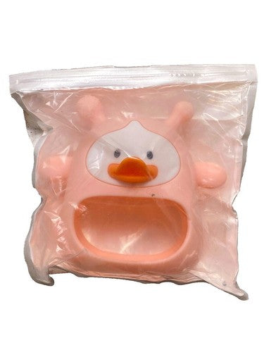 Spanky Cute Pink Duck Teething Mitten for Babies, Silicone Baby Teether Toy