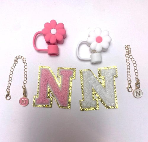 Stanley Cup Accessories Silicone Straw Cover Initial Charm Chenille Letter N 6pc