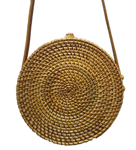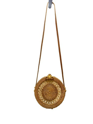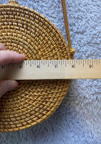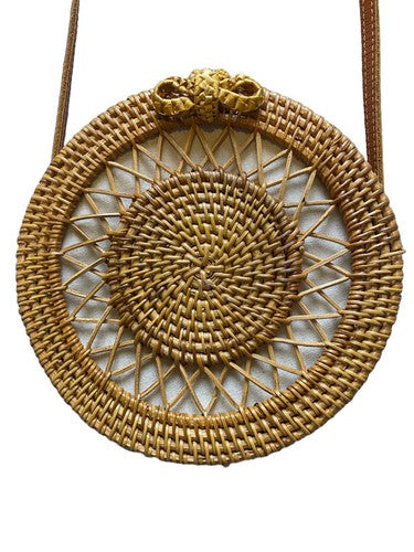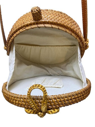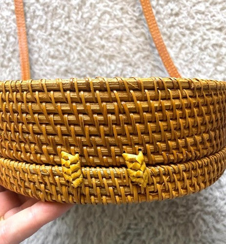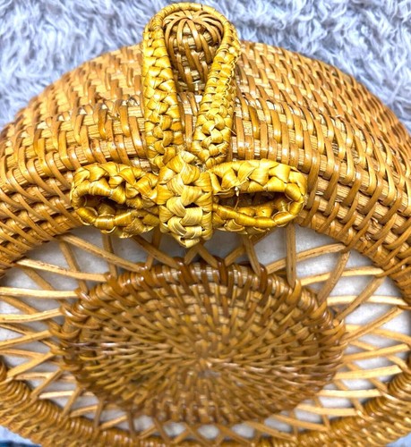 Straw Purse Round Box Bow Linen Lining Boho Festival Crossbody
