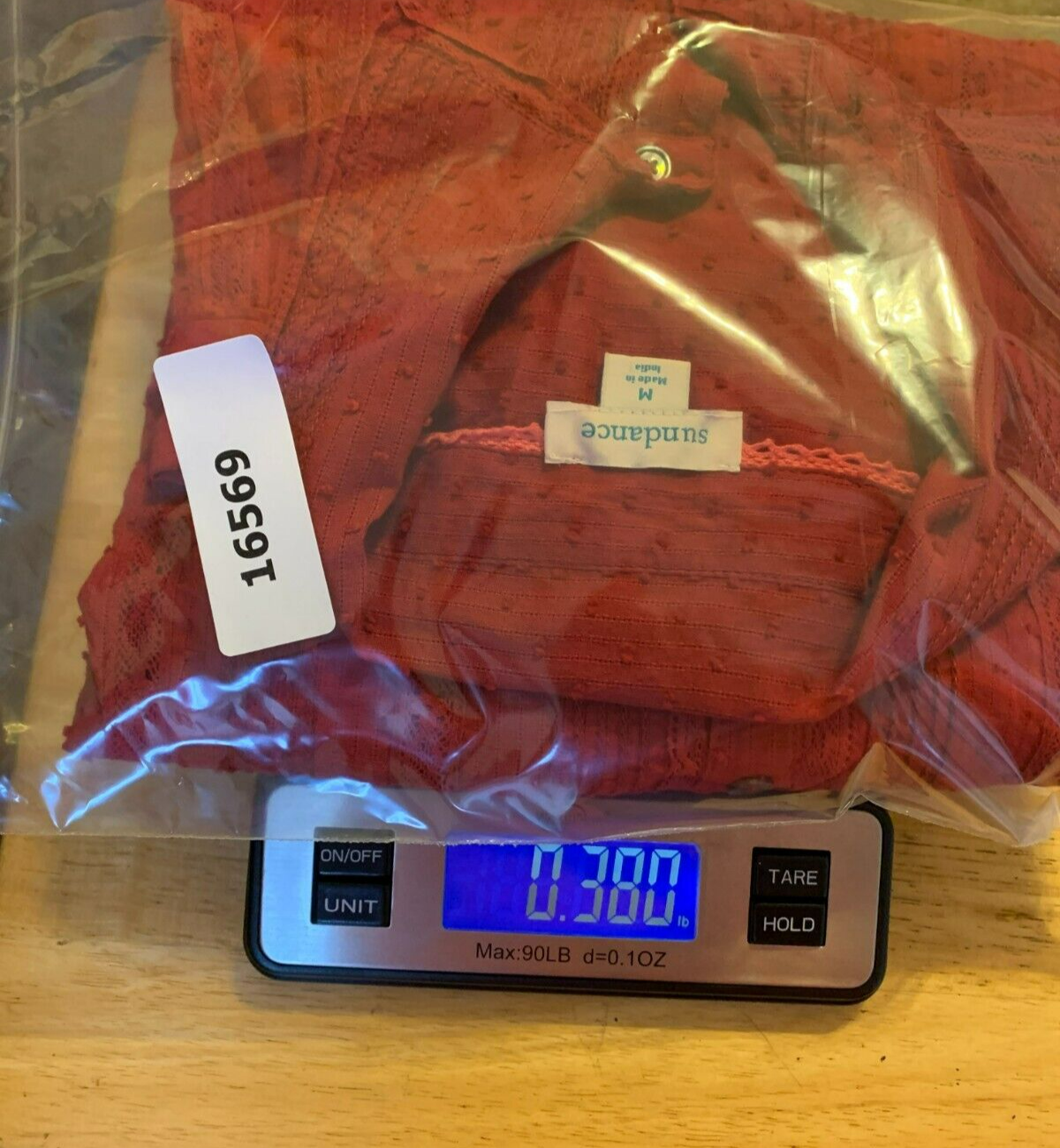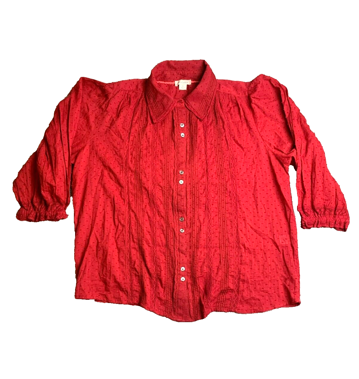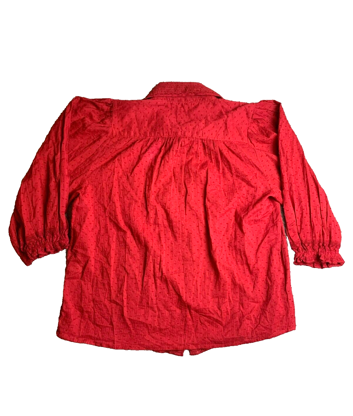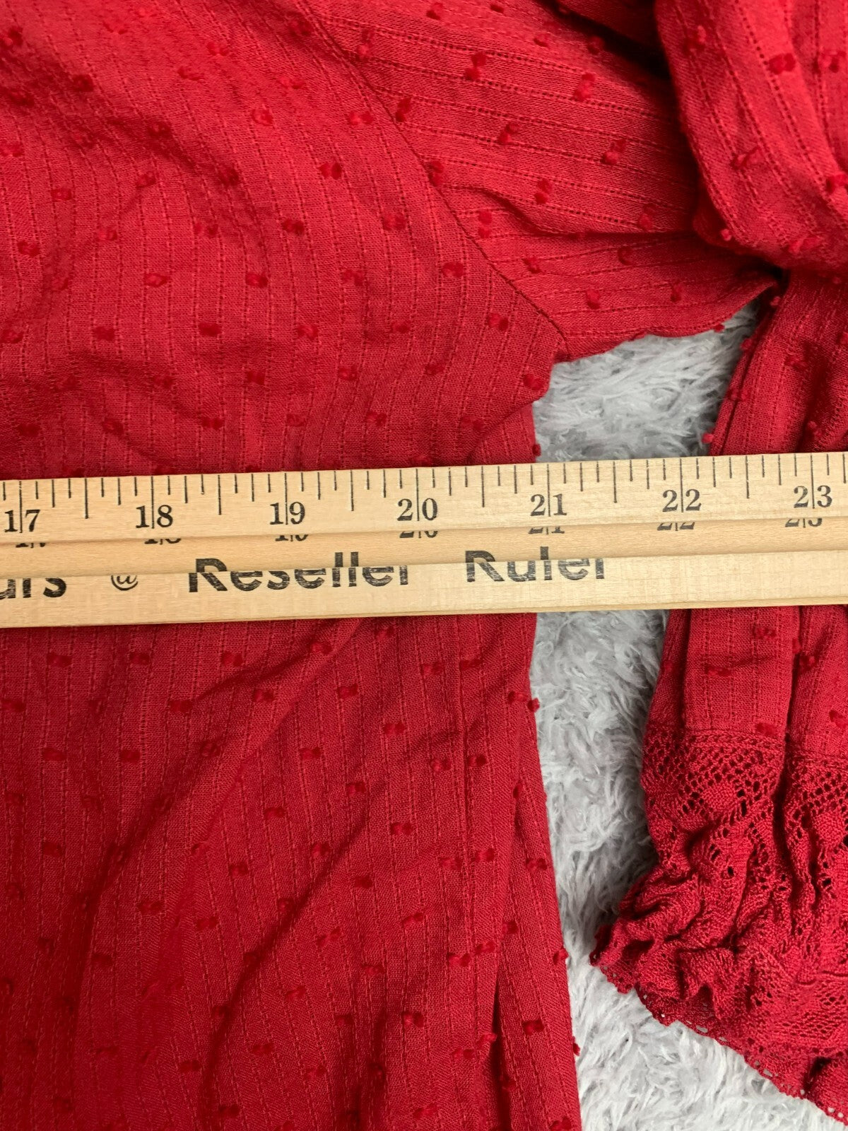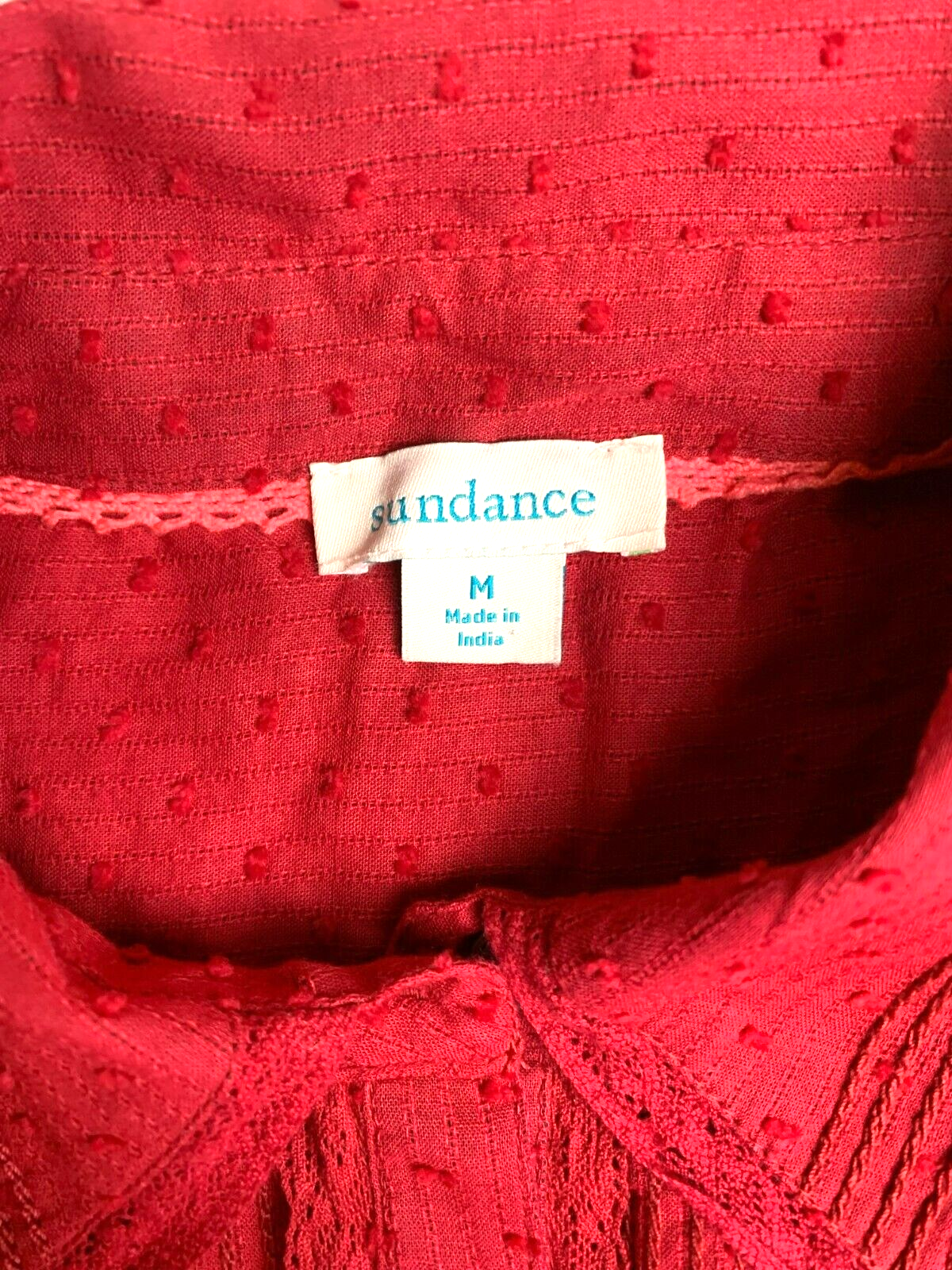 Sundance Shirt Womens Medium Red Swiss Dot Lace Trim Button Up Blouse Boho Lady