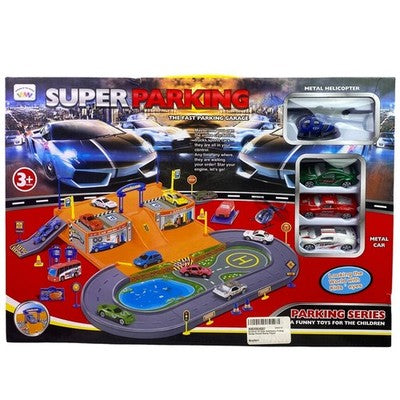 Embark on an adventure with this Super Parking The Fast Parking Garage playset. Watch as miniature metal cars and a helicopter navigate the winding roads and parking levels, bringing imaginative cityscapes to life. This engaging toy includes a detailed garage with car wash, a helipad, and a charming pond area, offering hours of creative play. Perfect for sparking young minds, this playset is ideal for playtime at home or as a fun gift for a birthday or holiday.
