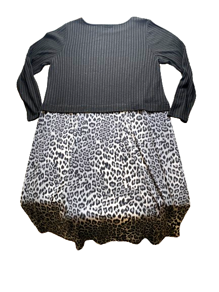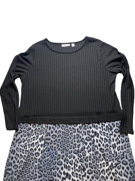 Susan Graver Dress Womens Extra Large Black Gray Leopard Sweater Rib Knit Ladies