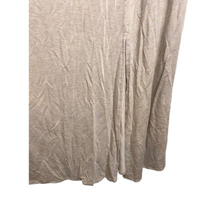 Effortless elegance unfolds in this Tahari knit maxi dress, a testament to understated style and all-day comfort. The sleeveless design and scoop neckline offer a breezy, relaxed feel, perfect for warm weather days. Its flattering silhouette gently skims the body, flowing into a graceful maxi length with a subtle back slit for ease of movement. The neutral beige hue ensures versatility, making it a seamless addition to any wardrobe. Imagine yourself strolling through a sun-drenched farmer's market, enjoying a casual brunch with friends, or simply unwinding at home in this supremely comfortable and chic dress.