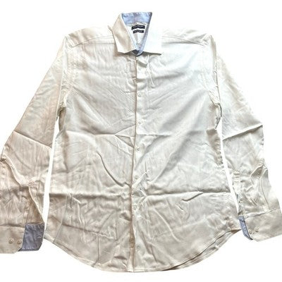 Keywords: mens dress shirt, long sleeve shirt, white dress shirt, textured shirt, formal shirt, business shirt, blue accent shirt, men's formal wear, dress shirt, men's clothing, long sleeve dress shirt