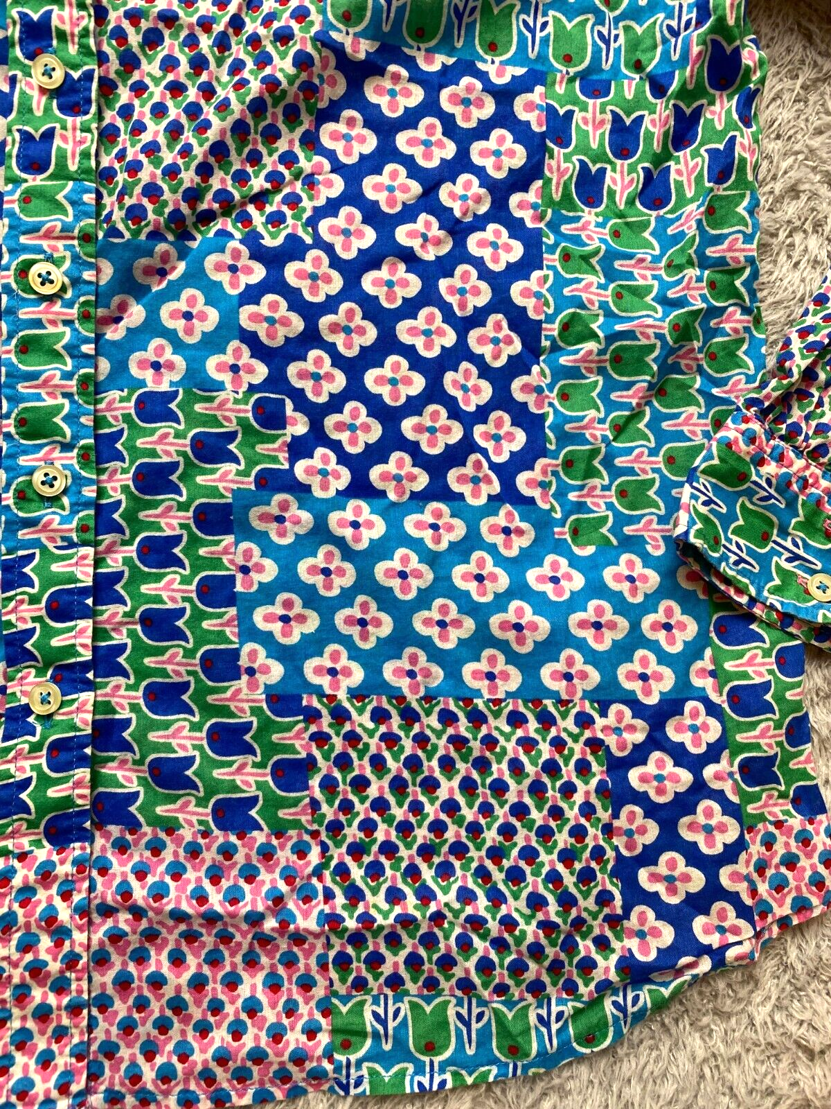 Talbots Shirt Womens Large Petites Colorful Patchwork Flower Button Up Ladies