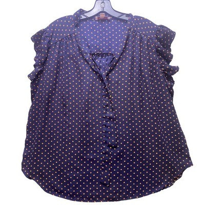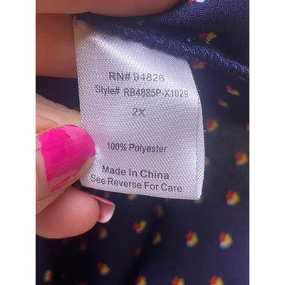 Keywords: blouse, floral, navy blue, ruffle sleeve, tie neck, plus size, 2X, Tempted Los Angeles, womens top, casual, bohemian, boho, dressy, career, work