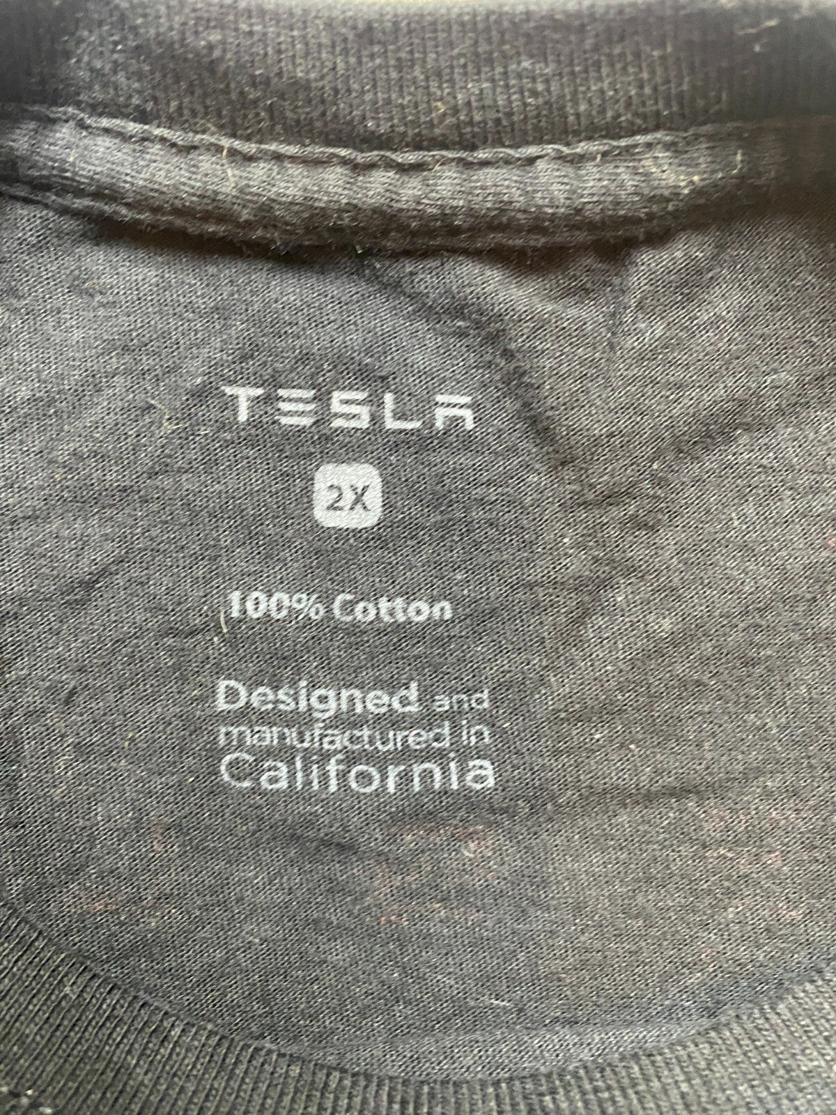 Tesla Shirt Adult 2X Black Students Performance Electric Car Crewneck Plus Mens