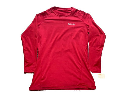 Tesla Shirt Adult Medium Red Long Sleeve Nylon Spandex Logo Mens