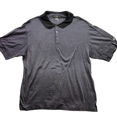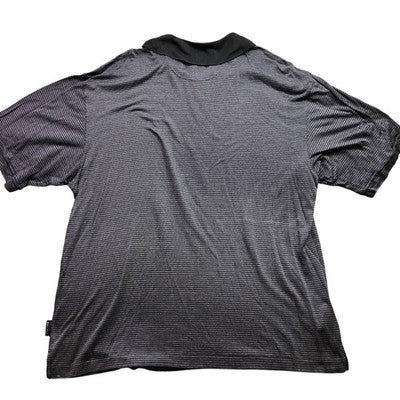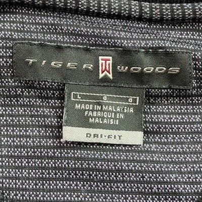 Keywords: Nike, Tiger Woods, Polo shirt, Golf shirt, Dri-Fit, Striped, Black, Gray, Mens, Large, Sportswear, Athletic, Casual, Activewear