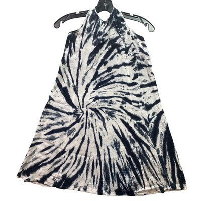 Keywords: tie dye dress, halter dress, sleeveless dress, casual dress, summer dress, beach dress, boho dress, bohemian dress, womens dress, rayon dress, Tiki Palm, M, medium dress