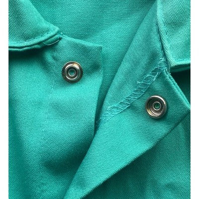 Forge ahead in comfort and protection with this robust welding work shirt. Boasting a vibrant teal hue, this shirt is designed for durability and safety in demanding work environments. Its sturdy construction features snap closures for easy wear and removal, and multiple pockets for convenient storage of tools and essentials. The flame-resistant fabric provides an added layer of security, ensuring peace of mind during intense tasks. Ideal for welders, mechanics, and construction workers, this shirt is perfect for tackling tough jobs in the garage, workshop, or job site.
