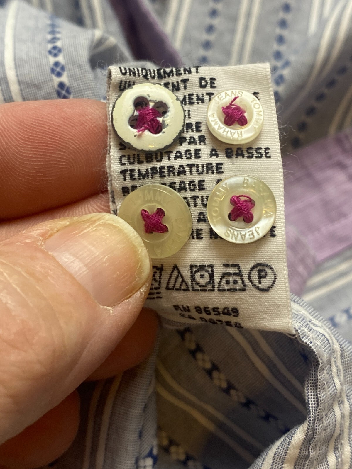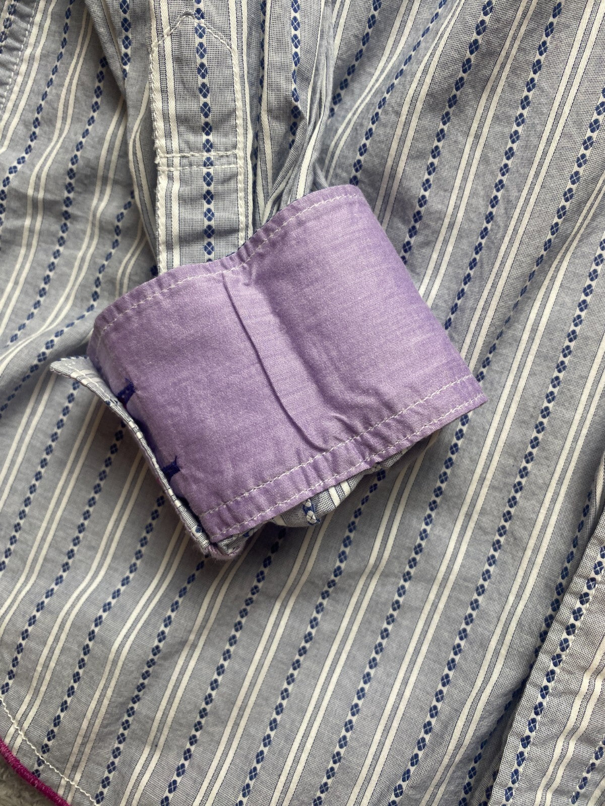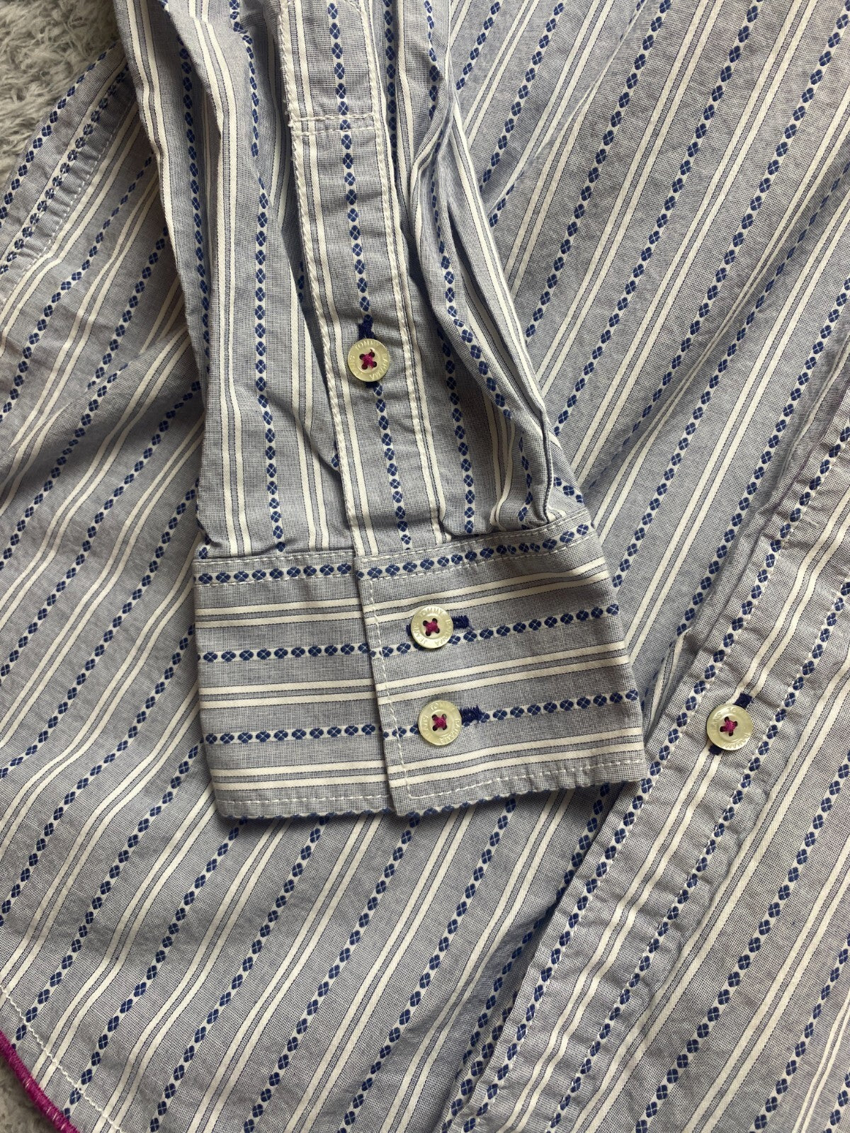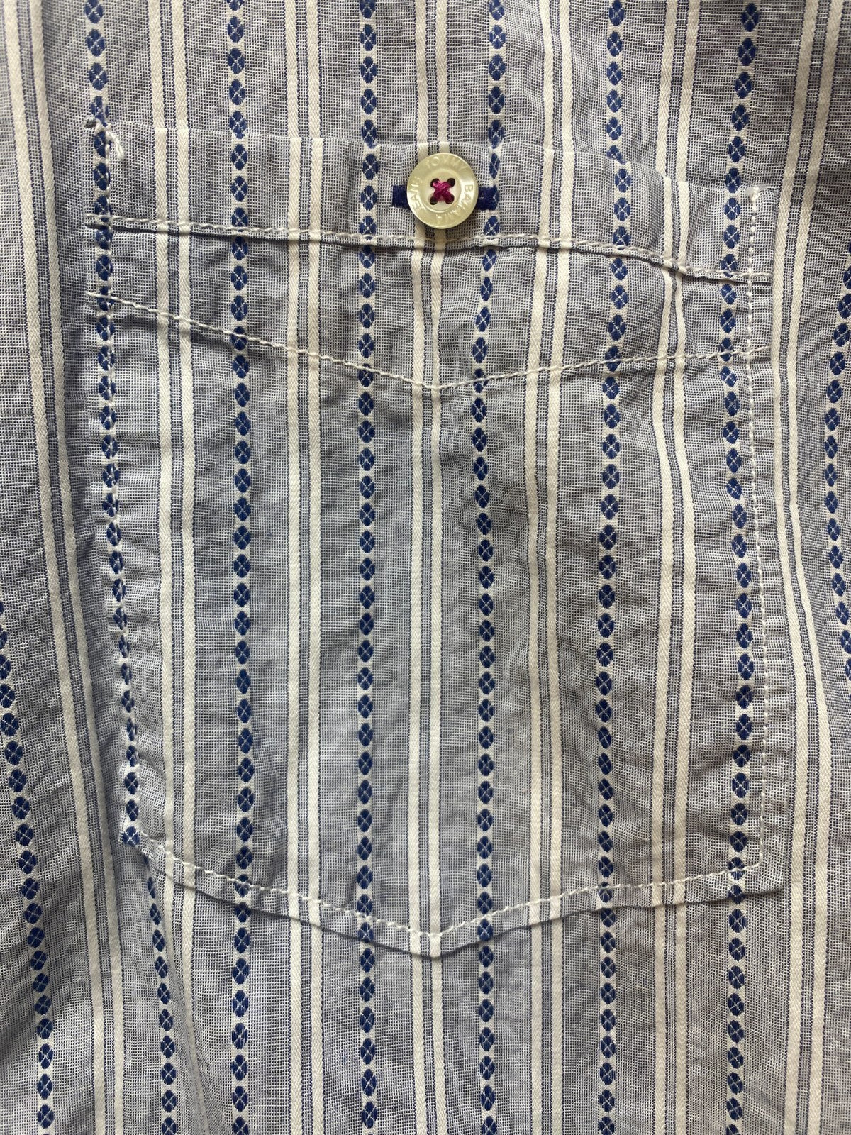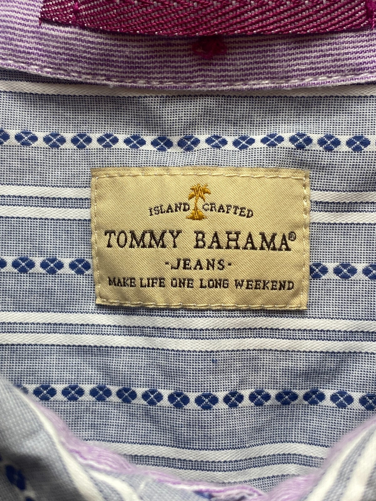 Tommy Bahama Shirt Adult Large Blue Striped Button Up Flip Cuffs Contrast Mens